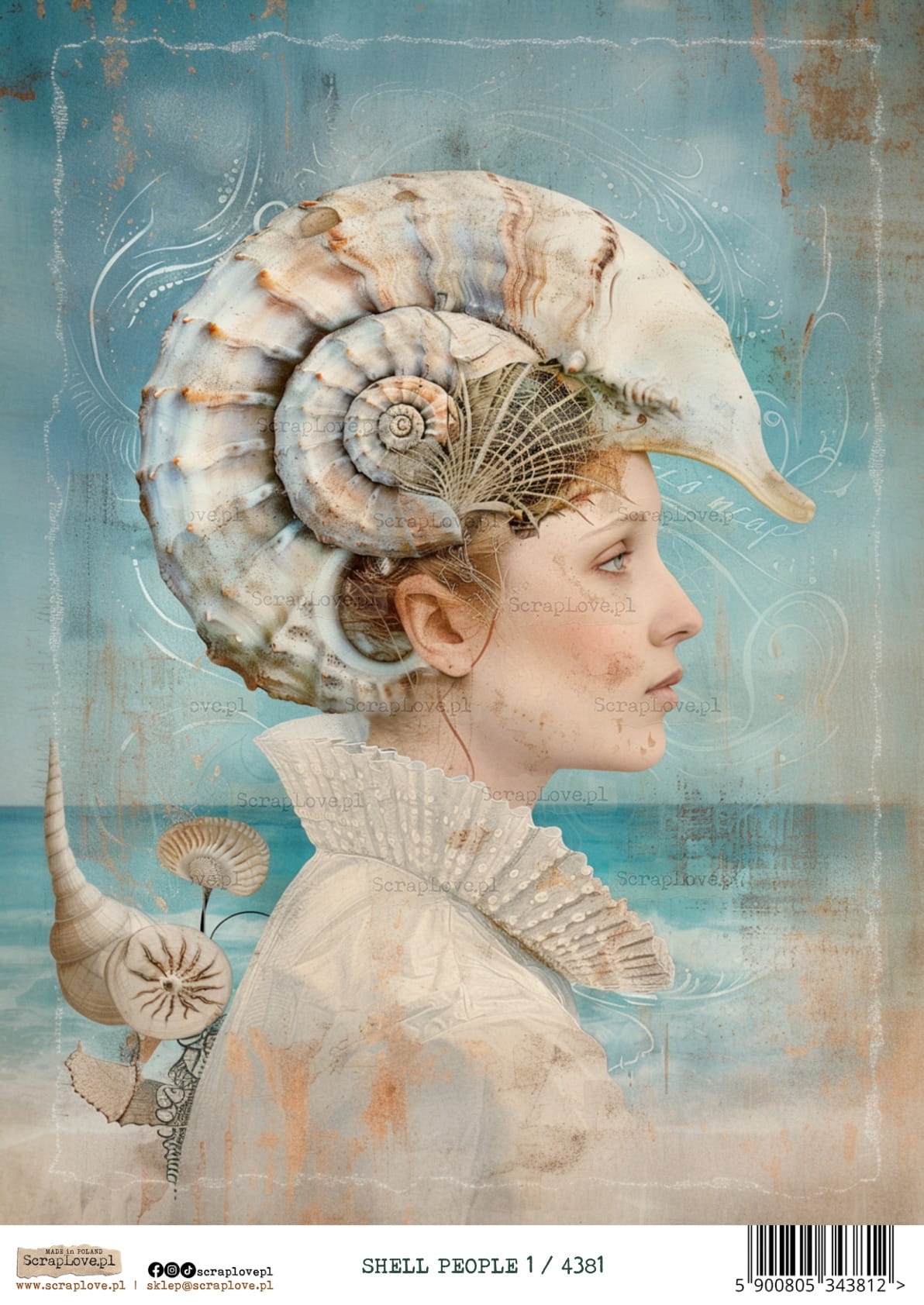 Muszla, Kobieta, Portret, Surrealizm, Morze, Ocean, Styl vintage, Kolory pastelowe, Fantazja, Natura, Morska istota, Rysunek, Ilustracja, Biżuteria z muszli, Styl renesansowy, Baśniowy świat, surrealizm, shell people, OCEAN, KOBIETA MUSZLA, MORSKIE, PODWODNY ŚWIAT