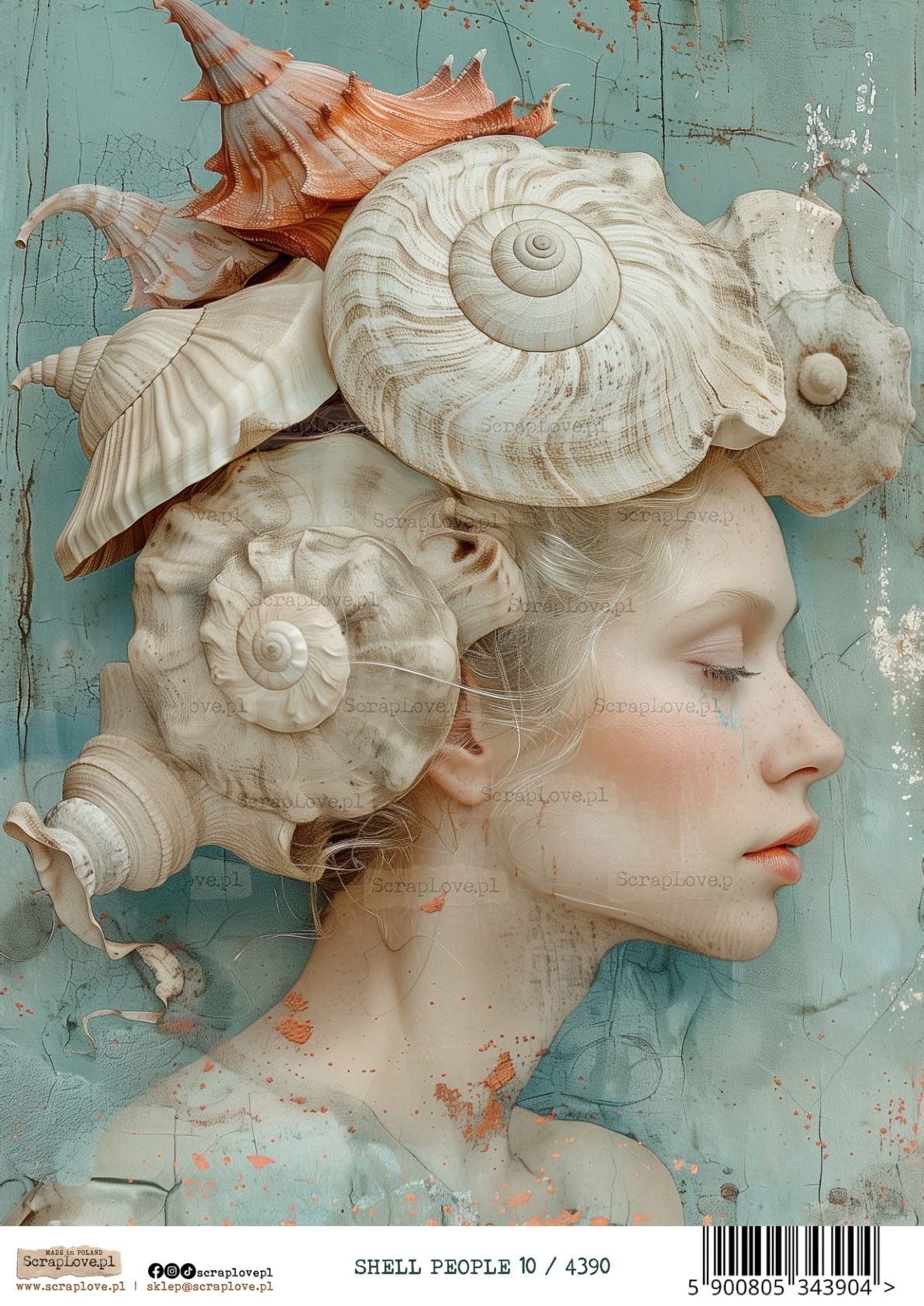 Muszla, Kobieta, Portret, Surrealizm, Morze, Ocean, Styl vintage, Kolory pastelowe, Fantazja, Natura, Morska istota, Rysunek, Ilustracja, Biżuteria z muszli, Styl renesansowy, Baśniowy świat, surrealizm, shell people, OCEAN, KOBIETA MUSZLA, MORSKIE, PODWODNY ŚWIAT