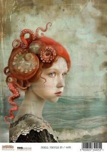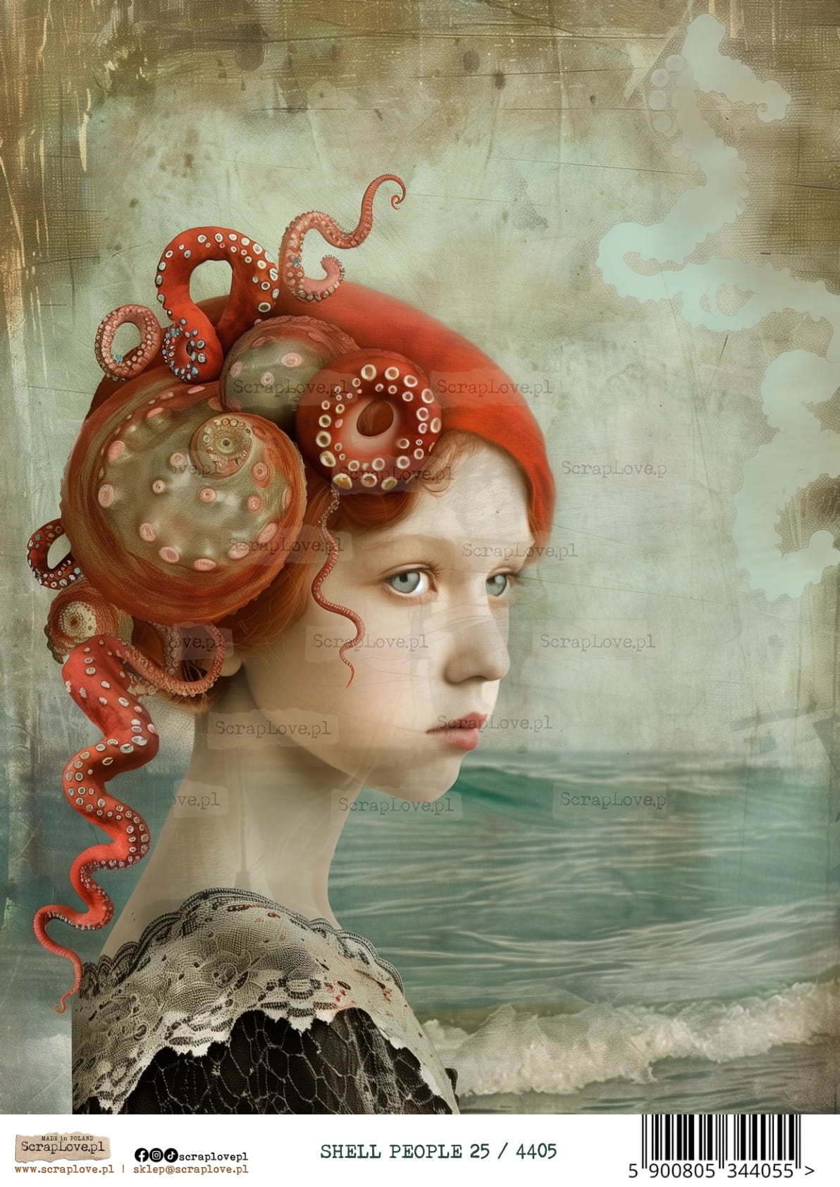Muszla, Kobieta, Portret, Surrealizm, Morze, Ocean, Styl vintage, Kolory pastelowe, Fantazja, Natura, Morska istota, Rysunek, Ilustracja, Biżuteria z muszli, Styl renesansowy, Baśniowy świat, surrealizm, shell people, OCEAN, KOBIETA MUSZLA, MORSKIE, PODWODNY ŚWIAT