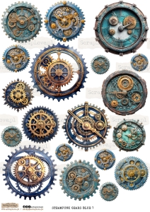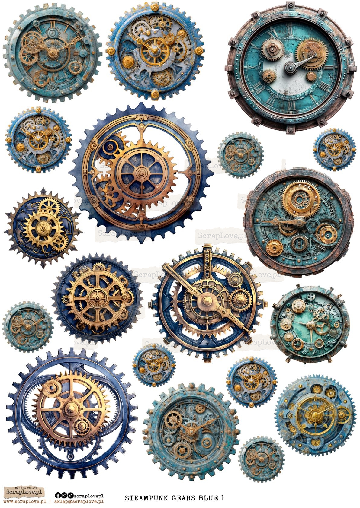STEAMPUNK GEARS BLUE 1 / STEAMPUNK ZĘBATKI NIEBIESKIE 1 - 4464 - WYDRUK NA PAPIERZE - PAPER PRINT