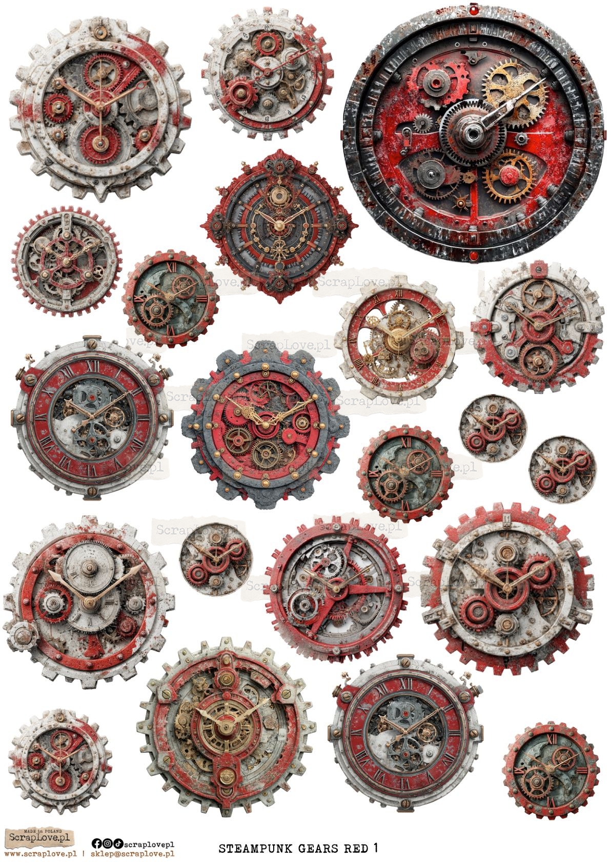 STEAMPUNK GEARS RED 1 / STEAMPUNK ZĘBATKI CZERWONE 1 - 4463 - WYDRUK NA PAPIERZE - PAPER PRINT