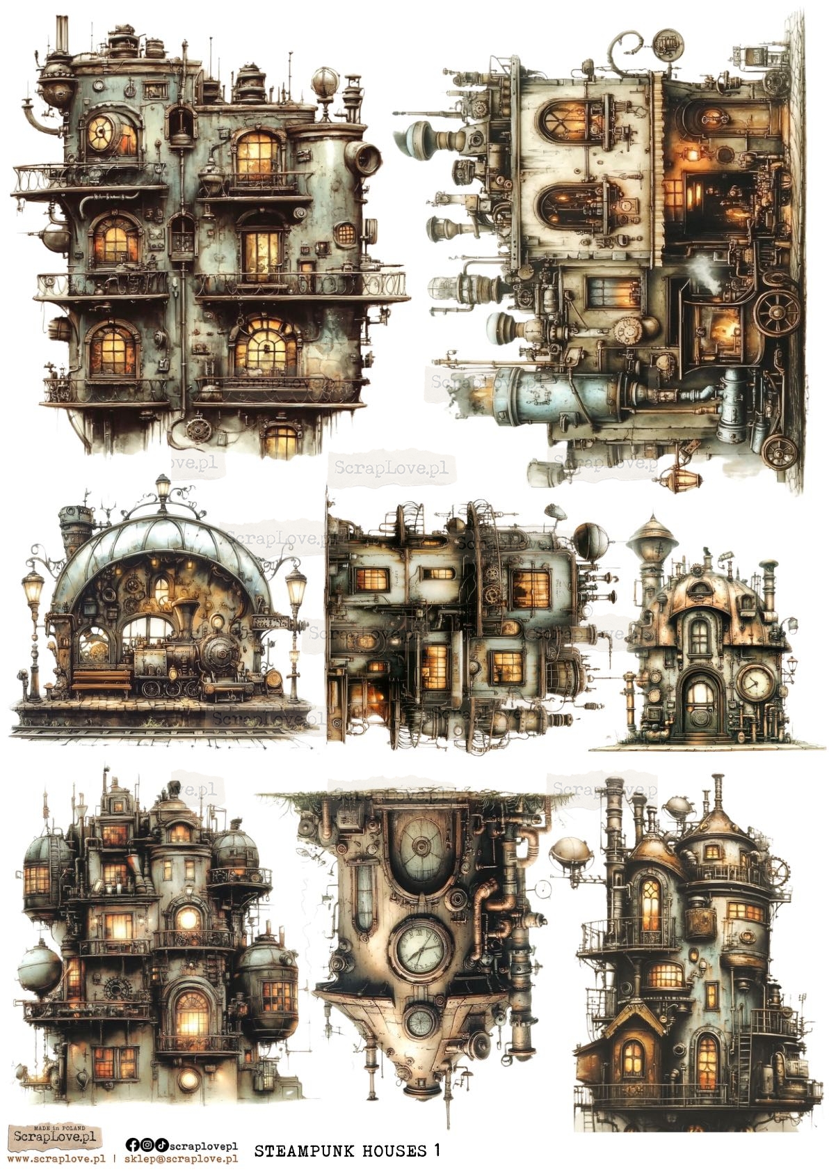 STEAMPUNK HOUSES 1 / STEAMPUNK ZDOMKI - 4466 - WYDRUK NA PAPIERZE - PAPER PRINT