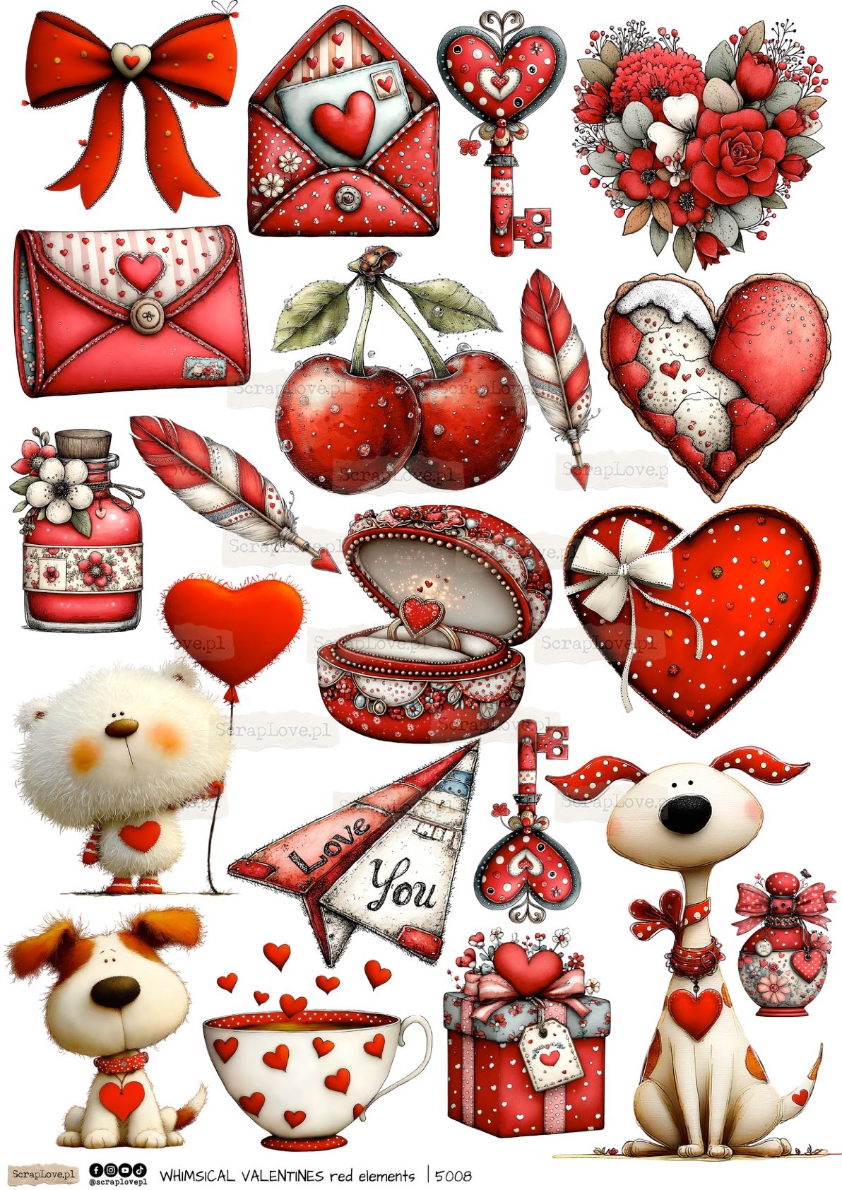 WHIMSICAL VALENTINES RED ELEMENTS 1 - 5008 - DRUK NA PAPIERZE