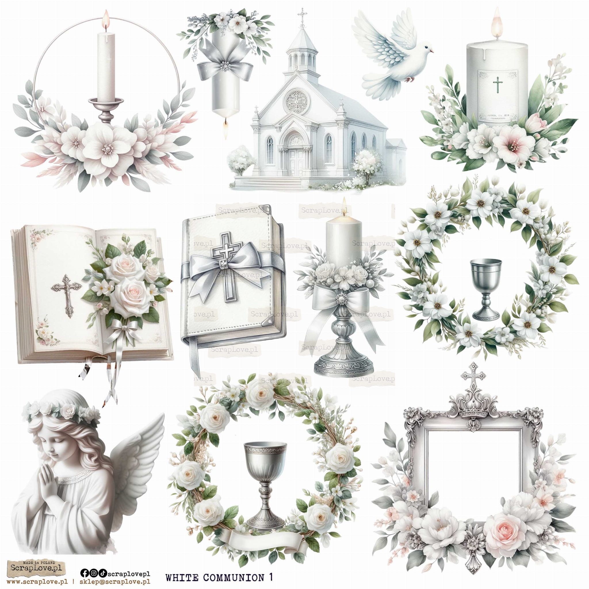 Zestaw elementów samoprzylepnych na arkuszu 24x24cm w wersji na papierze lub na przezroczystej folii.