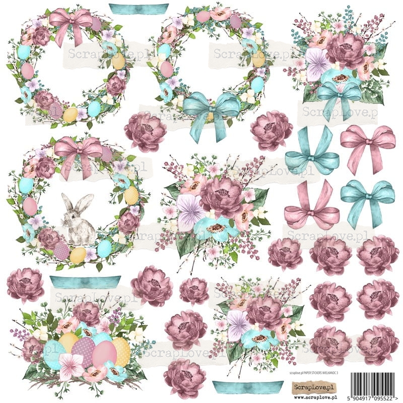 Zestaw samoprzylepnych, elementów wycinanych po obrysie, na arkuszu 24x24cm