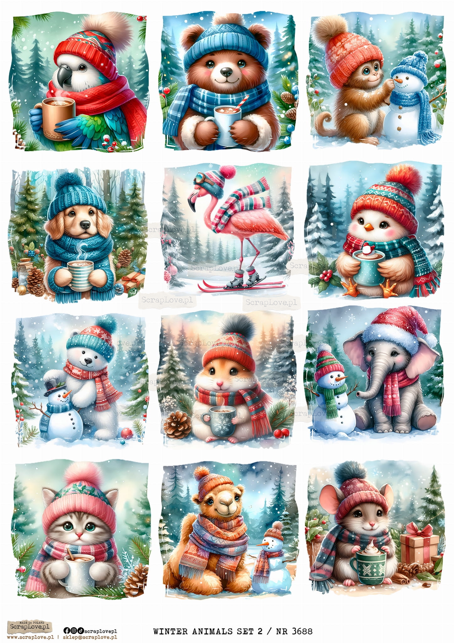 WINTER ANIMALS SET 2 - WYDRUK NA PAPIERZE
