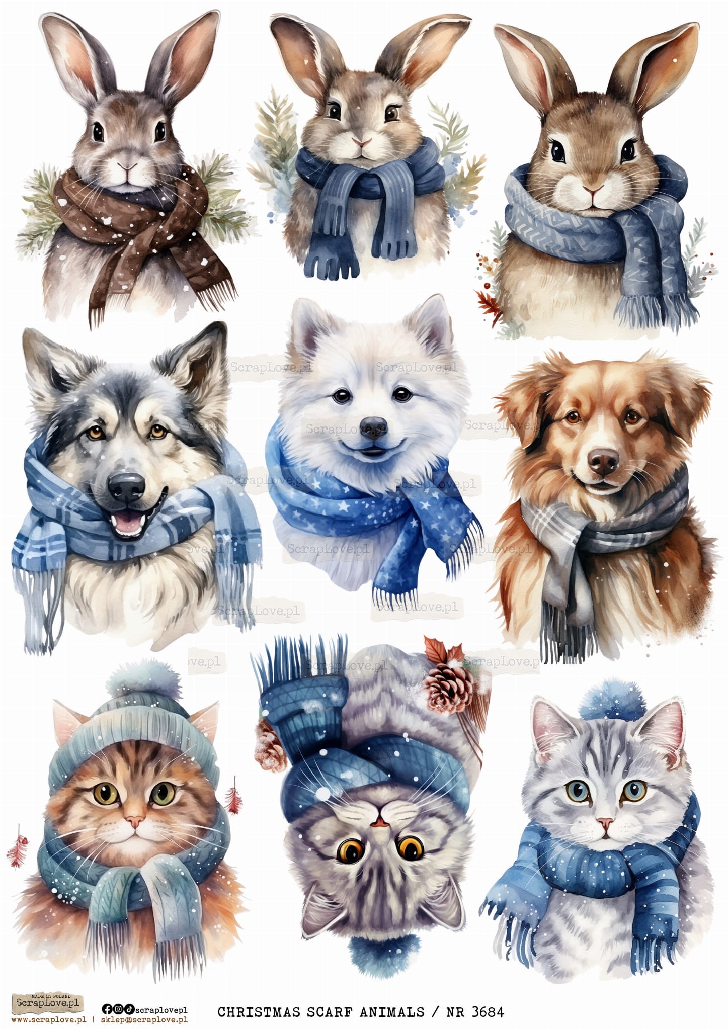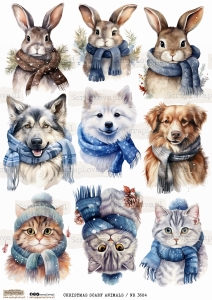 WINTER CHRISTMAS SCARF ANIMALS - PAPIER RYŻOWY