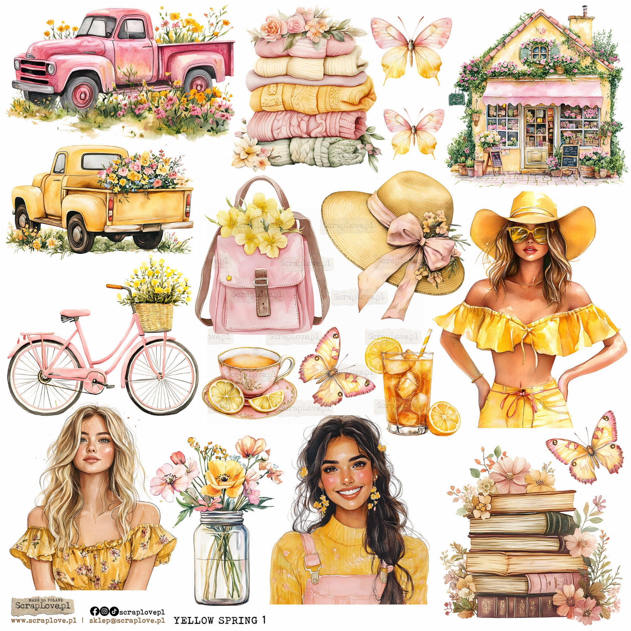 Zestaw elementów samoprzylepnych na arkuszu 24x24cm w wersji na papierze lub na przezroczystej folii.