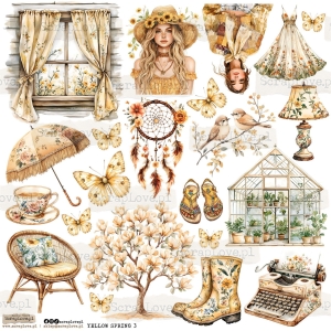 Zestaw elementów samoprzylepnych na arkuszu 24x24cm w wersji na papierze lub na przezroczystej folii.